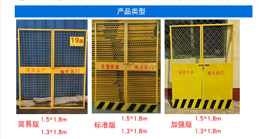 電梯安全門]的鋼材采用國家標(biāo)準(zhǔn)材料,嚴(yán)格按照圖紙生產(chǎn),焊接點(diǎn)非常牢固,能達(dá)到安全保護(hù)的目的。電梯安全門一般采用檸檬黃色,門的下部框架板采用黃色和黑色間隔,使用氬弧焊,強(qiáng)度高,質(zhì)量穩(wěn)定,不易跌落,扭曲。