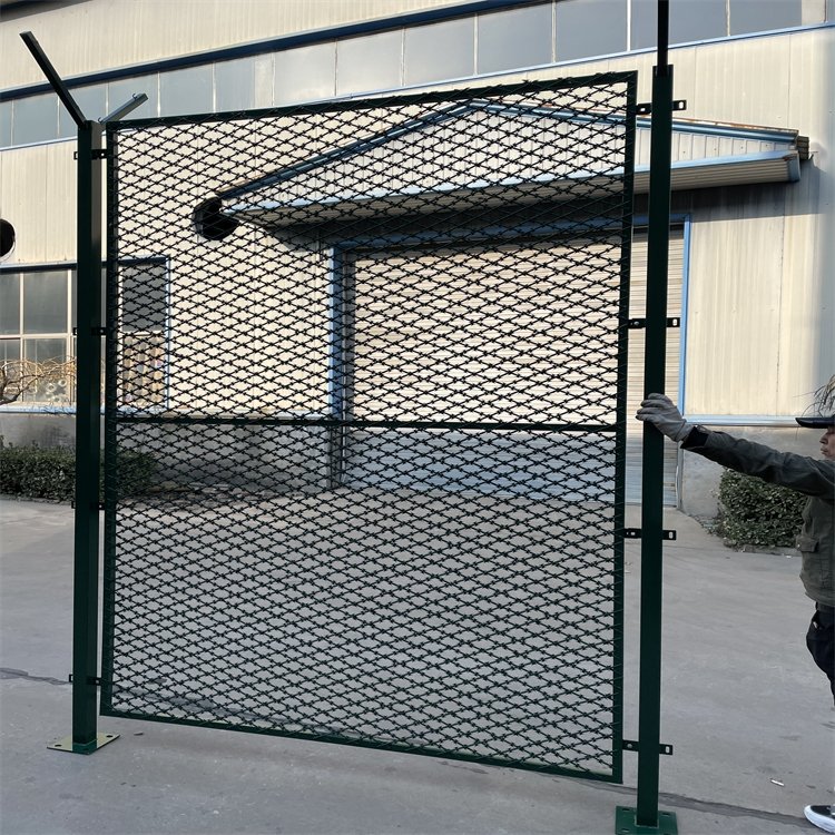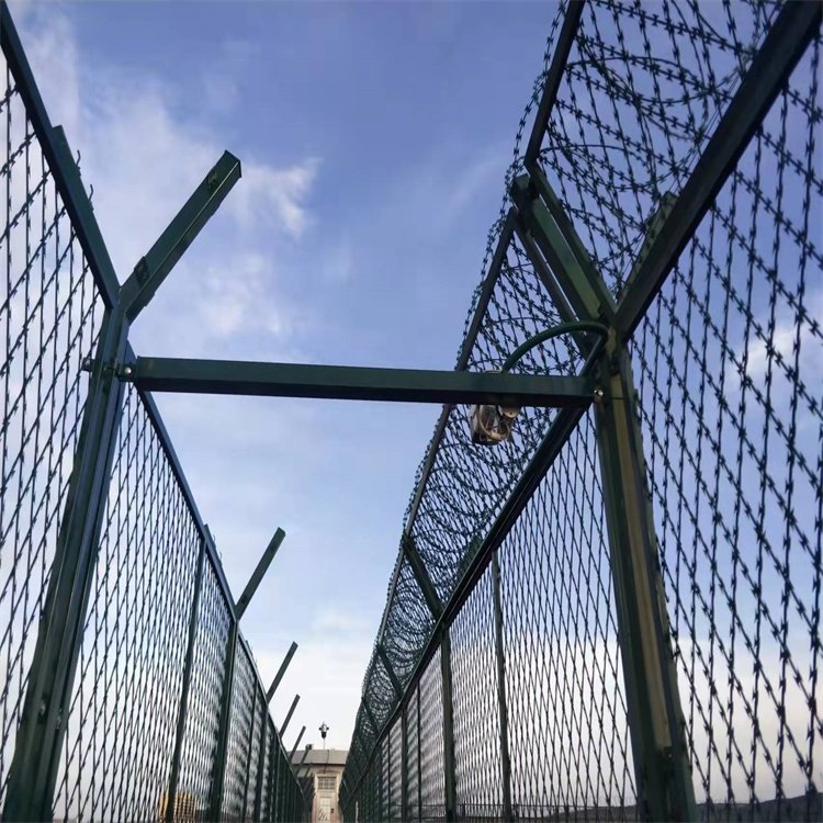看守所圍網又稱作安全防御護網,是由安全立柱(頂部可帶V型) ,加強型焊接片網,安全防盜連接件和刀片刺籠組成,強度和安全防御級別很高。近年來,被廣泛應用在監獄,看守所,軍事基地等高安全場所。表面采用電鍍、熱鍍、噴塑、浸塑等防腐形式,具有很好的抗老化、抗曬、耐候等特點。