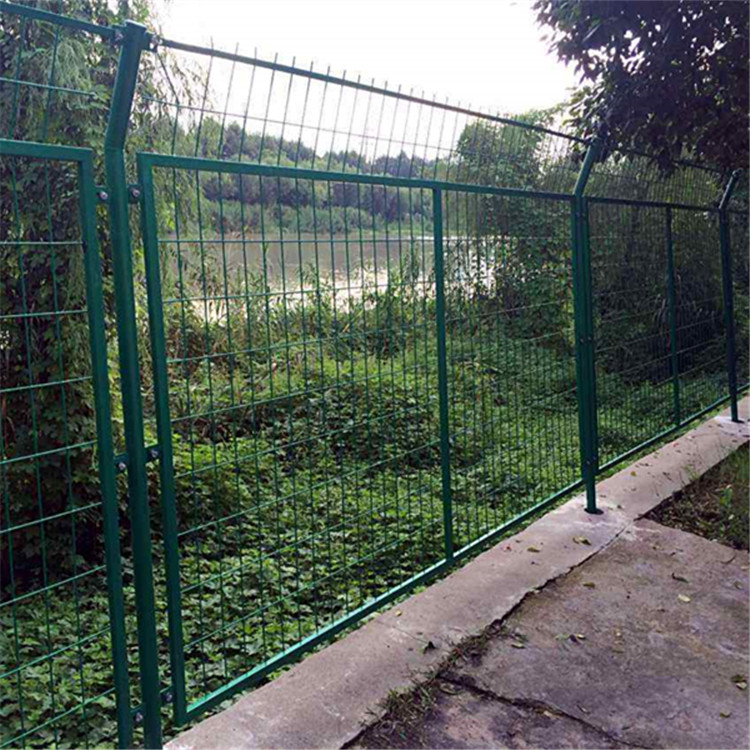 6、尺寸和型號符合要求的隔離柵網片,應按圖紙規定的方式從立柱端部開始牢固安裝到立柱的掛鉤上或將網片安裝在框架內,框架與立柱連接應牢固。所有的網片和鐵絲均應繃緊且不變形,安裝高度應符合圖紙的所有規定。隔離柵安裝完畢,立柱基礎都要進行最后的壓實處理。