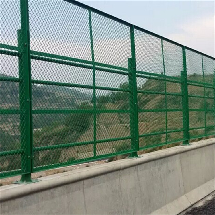 橋梁防拋網適用于選用混凝土護欄的上跨橋,橋梁防拋網設置距離為2m,膨脹螺栓應留意對螺栓顯露部分妥善維護,防拋網立柱與銜接板,接地扁鋼應保證焊為一體,銜接板經過膨脹螺栓固定;除緊固件、膨脹螺栓選用熱浸鍍鋅處理外,其它構件均應行熱浸鋅后再進行涂塑處理